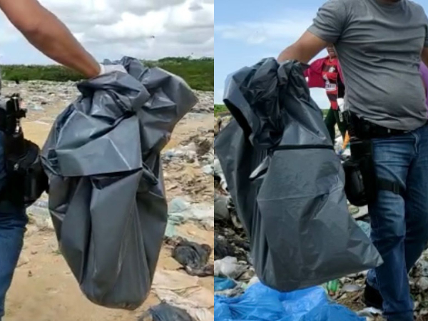 “Nossa equipe foi acionada até o lixão após ter sido encontrado um feto/recém-nascido e ao chegar no local nós constatamos que, provavelmente, se trata de um recém-nascido porque a gente ainda visualiza a presença do cordão umbilical e que estava dentro de uma sacola plástica e ausência dos membros superiores. A questão dessa ausência a gente não sabe precisar se foi em decorrência de uso da máquina no lixão ou se foi ação da presença de urubus no local. Em relação ao corpo do ponto de vista da perícia criminal a gente só visualiza a questão das lesos externas a gente constatou a ausência dos membros inferiores do corpo e a percebemos que é de poucos dias”, declarou.