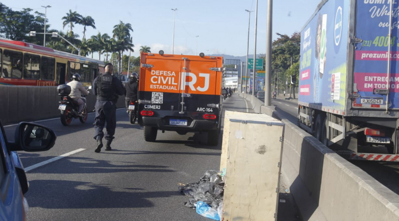 Corpo de homem é achado em caixa de madeira na Avenida Brasil, Zona Norte do Rio. Polícia investiga o caso e identidade da vítima é desconhecida