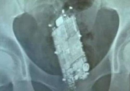 A dupla introduziu a bateria e o celular com a ajuda de uma proteção plástica. Os presos tiveram que passar por um procedimento médico para retirada das peças do telefone. A chapa do exame de raio-x mostra o celular dentro do corpo de um deles. Em outra imagem, é possível ver a bateria do telefone que estava com outro detento.