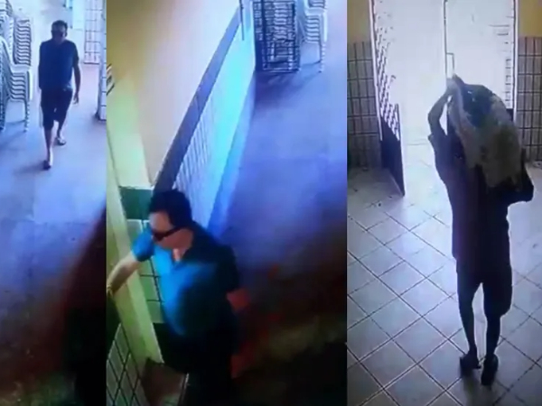 Nas imagens desta quarta, é possível ver quando o diretor sai da escola sozinho carregando um saco com os produtos. Já em outro vídeo, de agosto deste ano, ele é visto com outro homem. A Polícia não passou informações sobre este segundo homem.