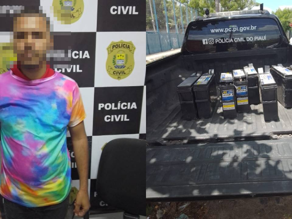 A Polícia Civil, através do 9° Distrito Policial, realizou nesta quinta-feira (15) a prisão em flagrante de A. L. V. da R., de 28 anos, dono de uma loja de sons automotivos no bairro Memorare, na zona Norte de Teresina, suspeito de receptar baterias de torres de celular furtadas.