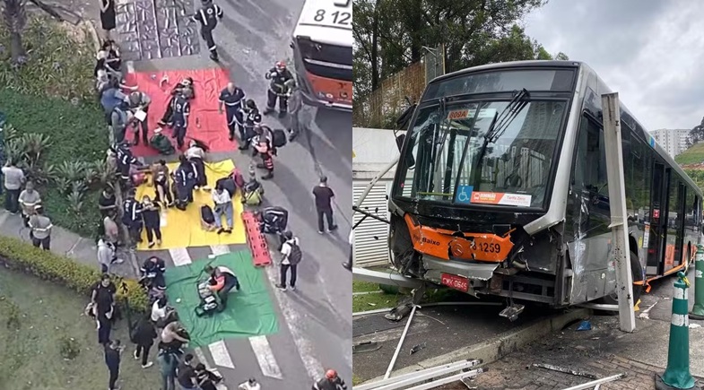 O ônibus perdeu o controle e acertou o portão de um condomínio grande às margens da rodovia. O veículo, que fazia a linha 809-A Jardim D'Abril/Pinheiros, levava passageiros, mas ainda não há informações se estava cheio.
