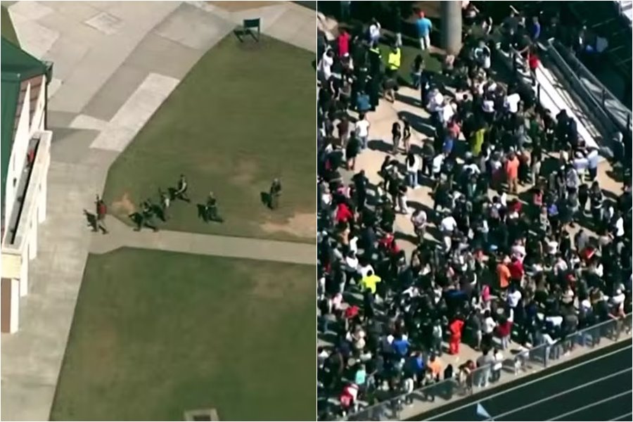 Após evacuar os alunos do prédio da escola, os policiais os conduziram ao campo de futebol americano da instituição. Imagens aéreas transmitidas pelo canal de notícias local WJCL mostraram uma intensa movimentação de pessoas, além de viaturas e ambulâncias no local.