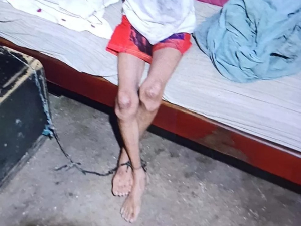 Os filhos, de 19 e 22 anos, foram encontrados amarrados, sujos e subnutridos. E, apesar de adultos, aparentam ter a idade de crianças.