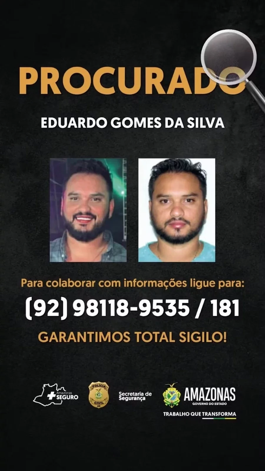 A Polícia Civil do Amazonas (PC-AM) divulgou a imagem de Eduardo Gomes da Silva, que é procurado por suspeita de envolvimento no caso da morte da babá Geovana Costa Martins, de 20 anos. Além de Eduardo, Camila Barroso da Silva, de 33 anos e patroa de Geovana, foi presa na quarta-feira (28) com base na mesma suspeita.