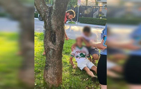 Celso foi agredido com um soco e ficou desacordado. Em seguida, a vítima foi fotografada caída no gramado, com os olhos fechados, e sendo amparada por um homem. O suspeito aparece atrás de uma árvore na imagem.