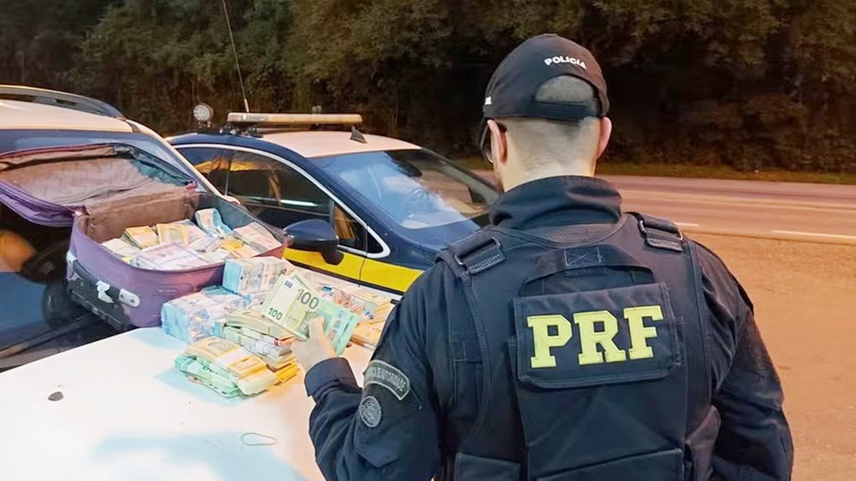 Na segunda-feira (18), a Polícia Rodoviária Federal (PRF) prendeu um homem de 43 anos, funcionário do Banco do Brasil, e sua companheira de 29, que transportavam R$ 1,5 milhão furtado de uma agência no Espírito Santo e tentavam fugir para o Uruguai.