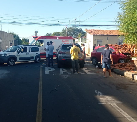 Um grave acidente envolvendo três veículos foi registrado na tarde desta terça-feira (01), no cruzamento da avenida Pinel com a rua Francisco Mendes, no bairro Cabral, na zona Norte de Teresina. Uma gestante ficou ferida e precisou ser socorrida às pressas.