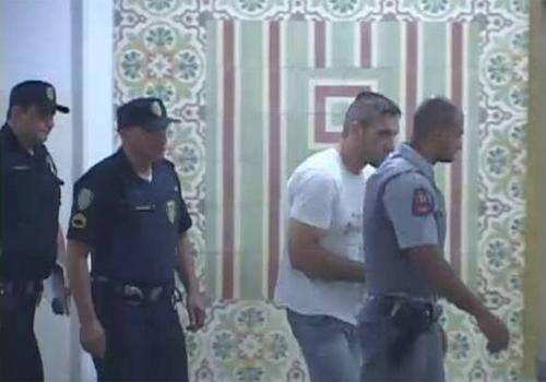 Um guarda-civil (ao centro, de branco) foi detido sob a suspeita de atirar em um garoto de programa dentro de um motel na zona leste de São Paulo.