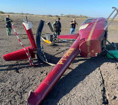 Os policiais fizeram rondas na região, mas não encontraram nenhum suspeito. Também não havia vestígios de feridos. Eles monitoravam uma possível situação de tráfico internacional de drogas quando encontraram o helicóptero. A aeronave, modelo Robinson R-44, matrícula PT-RMM, estava parcialmente destruída.
