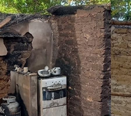 Casa ficou completamente destruída pelo incêndio. (Foto: Reprodução)
