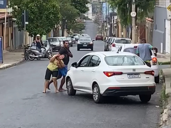 Homem dá 'gravata' e arrasta mulher pelos cabelos no meio da rua (Foto: TV Globo)O suspeito deixou o local com a mulher no carro e, aproximadamente 2 km depois, foi encontrado por uma viatura da PM. Ele tentou fugir, mas acabou batendo em outro veículo. Bruno Vinícius da Silva e a mulher, são casados há 13 anos e têm dois filhos. O homem foi preso e encaminhado para a delegacia. A vítima foi socorrida pelo Serviço de Atendimento Móvel de Urgência (Samu) e encaminhada para o Hospital João XXIII em estado grave.
