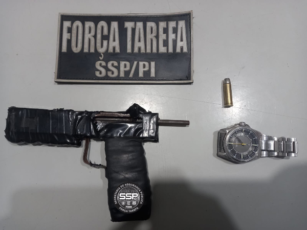 Foram apreendidos um revólver de fabricação caseira, uma munição calibre 28, um veículo modelo GM/Onix e um aparelho celular.