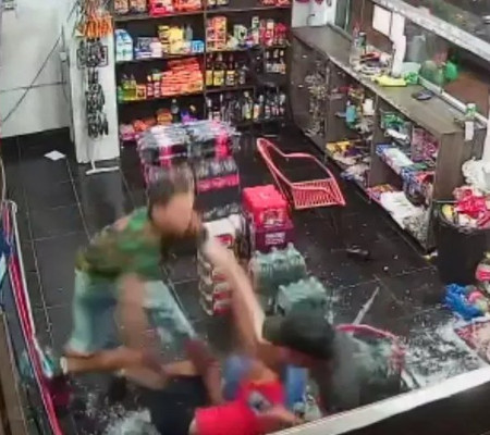 O comércio encontra-se no Setor Jardim Guanabara. Nas imagens, é possível acompanhar que o rapaz quebra a porta de vidro para entrar no local. Um amigo do funcionário tenta parar o agressor com chutes, sem sucesso.