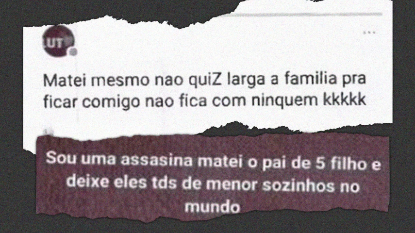 Depois de cometer o crime, a mulher compartilhou mensagens através de uma rede social onde confessava o crime: “Matei mesmo. Não quiz larga (sic) a família pra ficar comigo não fica com ninguém kkkkk”. Em outro post ela escreve: “Sou uma assassina, matei o pai de 5 filhos e deixei eles todos sozinhos no mundo”.