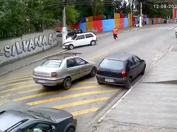 Uma câmera de segurança registrou toda a ação. As imagens mostram um Fiat Uno branco saindo do controle e batendo em um porte. Logo em seguida, um homem aparece correndo em direção do veículo, disparando tiros e fugindo.