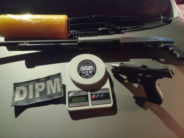 O suspeito teve mandado de prisão expedido no município de Altos, pelo crime de roubo. Com ele foi apreendido uma pistola de calibre 380, nove munições do mesmo calibre, uma espingarda de calibre 12 e uma balança de precisão.