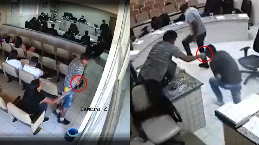 Na ocasião, uma mulher que estava com o atirador tentou intervir, mas sem sucesso, levantando-se atrás dele e puxando sua camisa para evitar o crime, conforme mostram as imagens. Quando os tiros foram ouvidos, o réu tentou se proteger correndo dentro do próprio espaço do júri, provocando uma reação de fuga nas pessoas presentes. No vídeo, é possível observar testemunhas, advogados e o juiz buscando abrigo e correndo para fora da sala. Além dos tiros, o agressor desferiu coronhadas na cabeça do réu quando conseguiu se aproximar.