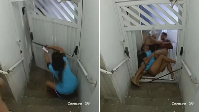 Um homem de 37 anos foi preso em flagrante após tentar matar a própria irmã em Cubatão (SP). De acordo com as imagens, após uma discussão entre eles, o agressor saiu pelado do seu apartamento com uma faca e perseguiu a vítima. Antes de chegar no térreo, ele ainda invadiu a residência do vizinho de 62 anos, e deu golpes no rosto dele.