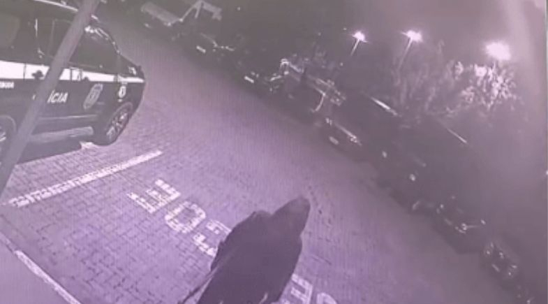 Algumas horas depois, o veículo foi rastreado e encontrado em Bertioga, no litoral paulista. Câmeras de segurança registraram a ação e flagraram o momento em que o suspeito pulou o muro do prédio armado com um alicate.