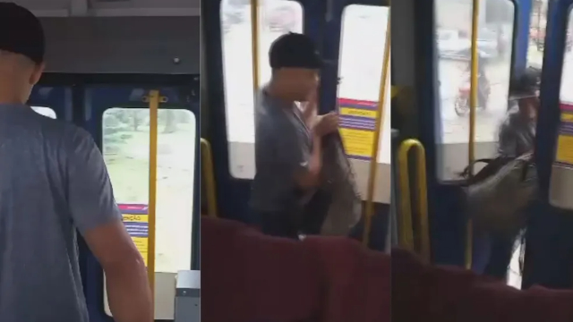 Momento em que o homem estava dentro do ônibus | Foto: Reprodução
