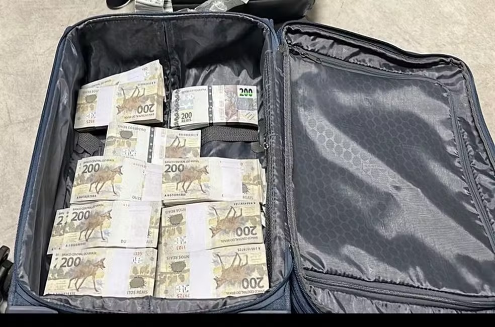 O dinheiro estava em uma mala, separado em maços de notas de R$ 200. Os suspeitos podem responder por lavagem de dinheiro, crime com pena de até dez anos de prisão.