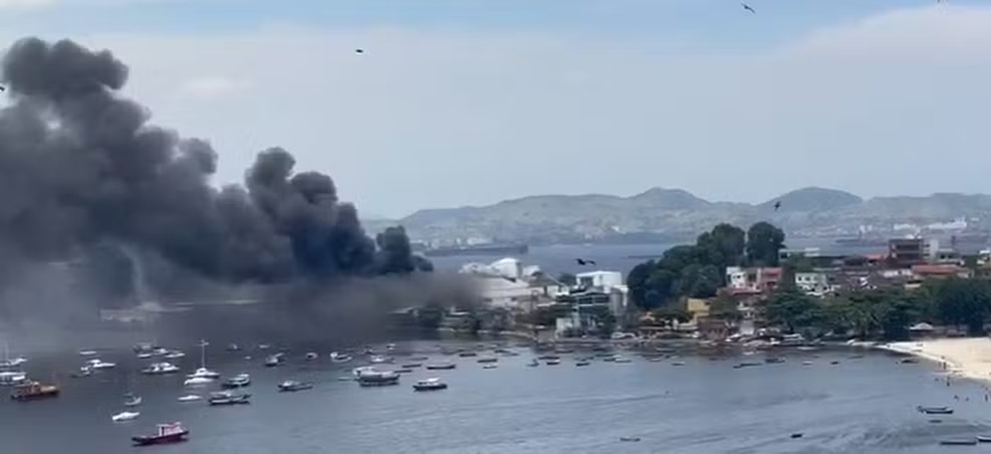 Um incêndio em uma fábrica de óleo na Ilha do Governador, Zona Norte do Rio, gerou intensa fumaça na tarde deste sábado (8).