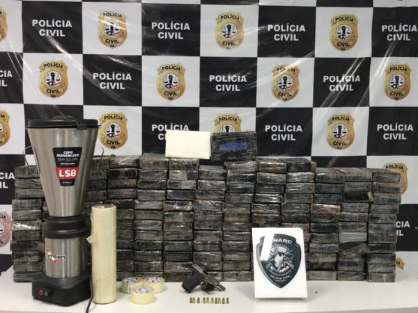 Com o suspeito, além da grande quantidade de droga, a Polícia Civil do Maranhão (PC-MA) ainda apreendeu uma pistola calibre 380 e vários apetrechos para refino e embalo dos entorpecentes.