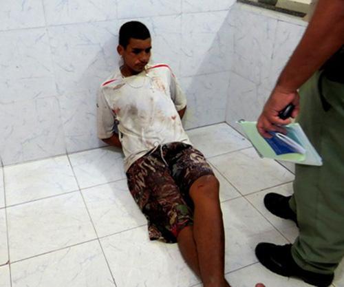 Uma guarnição da Polícia Militar, comandada pelo cabo Farlon Machado, prendeu o acusado e apreendeu tanto o celular como a faca utilizada pelo jovem. Wandeson Silva foi levado para o hospitale depois conduzido para a Central de Flagrantes.