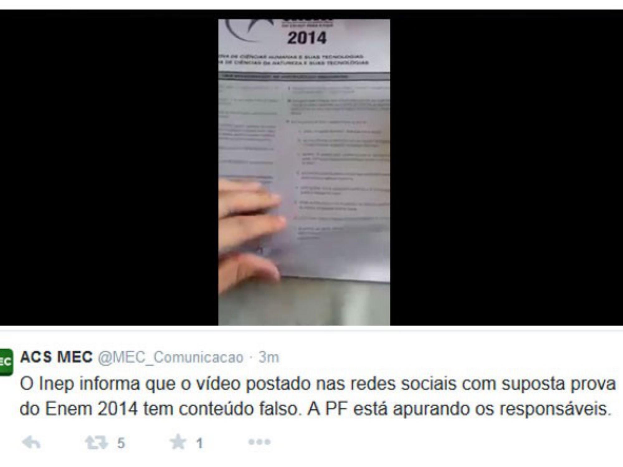 Um vídeo de uma suposta prova branca do Enem que teria vazado circula neste sábado, 8, nas redes sociais. O Ministério da Educação afirma, por meio da assessoria de imprensa do Inep, que é uma prova falsa e que a Polícia Federal está apurando o caso.