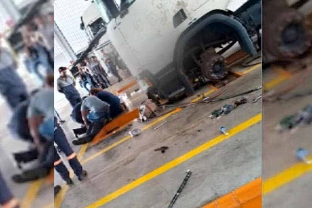 Os colegas da oficina precisaram usar uma empilhadeira para levantar o caminhão e resgatar o jovem. Equipes do Corpo de Bombeiro foram chamadas e realizaram a imobilização cervical e pranchamento do rapaz, que apresentava ferimentos graves no crânio, mandíbula e sinais evidentes de desvio de traqueia.