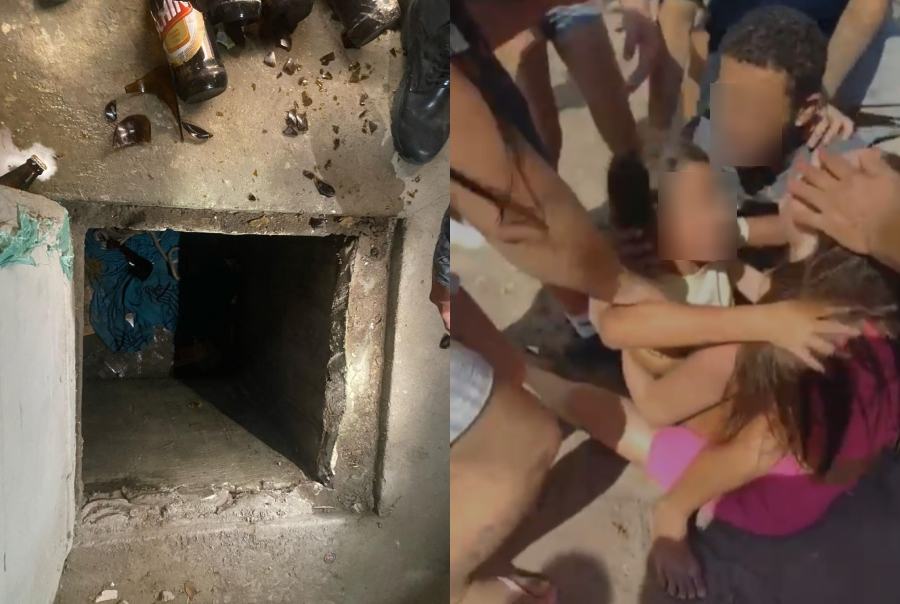 As imagens mostram os policiais procurando a menina, que os orienta a encontrá-la. É possível ver também o momento em que o suspeito começa a ser espancado por populares. A menina foi resgatada com vida e recebeu cuidados médicos.