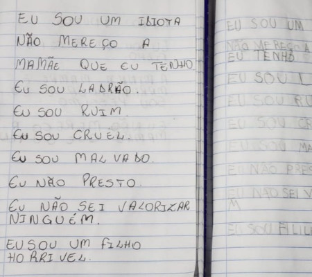 Segundo o delegado Antonio Carlos Ractz, Miguel era obrigado a copiar frases como "eu sou um idiota", "não mereço a mamãe que eu tenho", "eu sou ladrão, "eu sou ruim" e "eu sou um filho horrível".