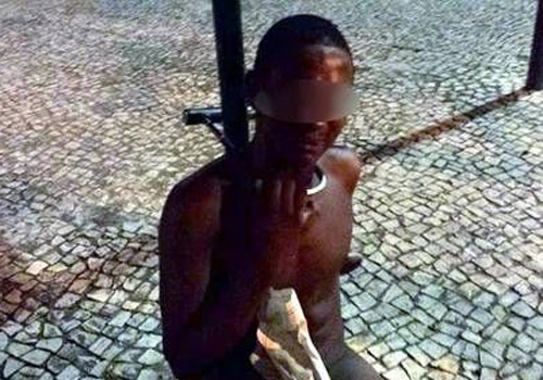 No dia 31 de janeiro, na avenida Rui Barbosa, no Flamengo, o adolescente foi preso a um poste por um grupo de justiceiros, que chegou ao local em motocicletas ? um dos agressores estaria com uma pistola, na versão do jovem. O menor, que tem três passagens na polícia por roubo e furto, foi levado com lesões corporais para o hospital Souza Aguiar, no Centro, mas acabou fugindo da unidade. Na ocasião, fotos suas postadas em uma rede social causaram indignação. O jovem ficou preso a um poste com uma corrente de bicicleta. Na semana seguinte, ele foi até um abrigo municipal no Centro espontaneamente.