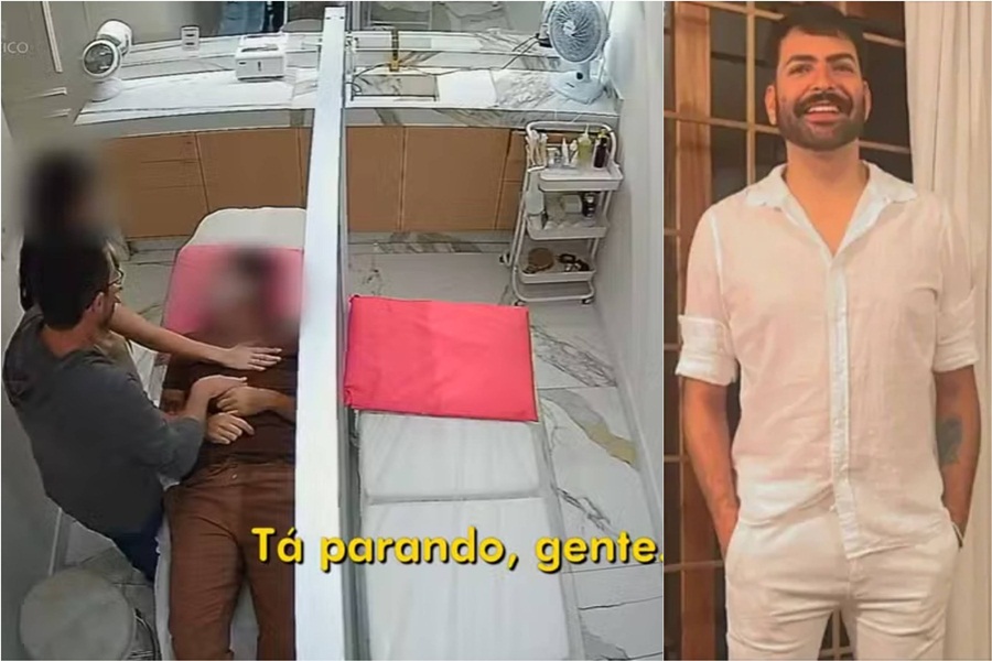 Em um trecho, o namorado de Henrique, Marcelo, alerta: "Ei! Ele tá passando mal! Natalia..." e desesperado, pede: "Ajuda pelo amor de Deus, gente". Henrique chegou à clínica às 10h03, e Marcelo entrou logo em seguida.