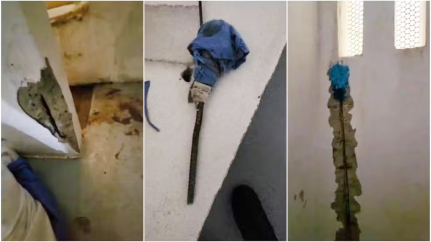 As paredes das celas estavam prejudicadas pela umidade devido à falta de manutenção por vários anos. Os detentos transformaram as barras de ferro em ferramentas para perfurar uma abertura na esquadria onde estava localizada uma luminária, entre o espaço e a cela, cujas dimensões originais eram de 20x70cm.