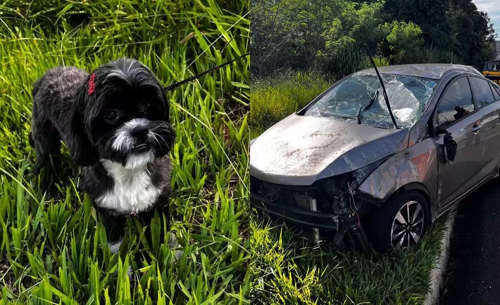Segundo a Polícia Rodoviária Federal (PRF), a motorista relatou que estava transportando o cachorro dentro do carro quando a situação aconteceu.