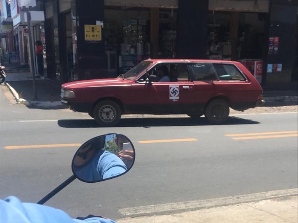 Um motorista foi flagrado na manhã desta quarta-feira (31), transitando no centro do município de Campo Maior, no Norte do Piauí, com uma suástica nazista em seu veículo, de modelo Ford Belina e cor vermelha. O registro foi feito no cruzamento da BR-343 com a avenida Demerval Lobão, principal via comercial da cidade.