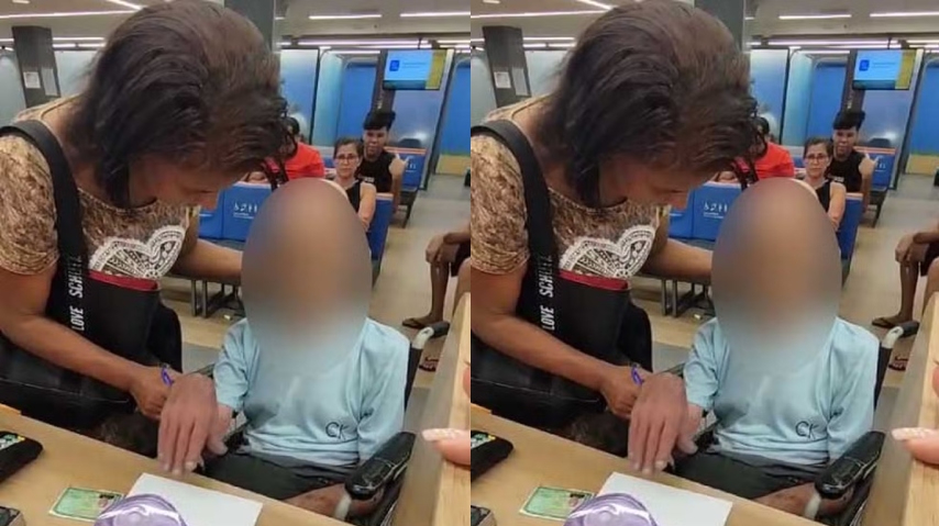 🎥 REGISTRO: Imagens feitas pelas atendentes do banco mostram Nunes tentando manter a cabeça do homem erguida, enquanto o instiga a assinar o documento. Durante o ocorrido, as funcionárias perceberam que o homem não aparentava estar bem e tentaram intervir.