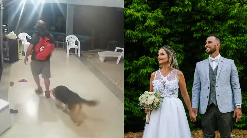 Um noivo identificado como André Daneluz teve que interromper sua própria festa de casamento ao descobrir que sua residência estava sendo invadida por criminosos em Concórdia, no Oeste de Santa Catarina. André deixou a sessão de fotos com sua esposa, que estava ocorrendo em um salão no bairro Vista Alegre, no sábado (3), ao receber a confirmação do furto por meio do videomonitoramento em seu celular.