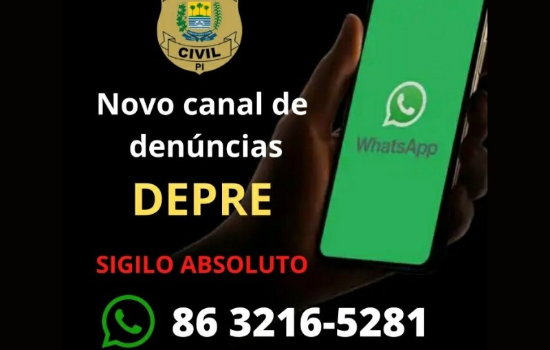 Objetivando facilitar a comunicação com a população, a Delegacia de Prevenção e Repressão a Entorpecentes – DEPRE, passa a disponibilizar o mais novo canal de denúncias anônimas, utilizando o aplicativo WhatsApp, através do número (86) 32165281, que é o mesmo telefone fixo utilizado nas chamadas e denúncias por voz.