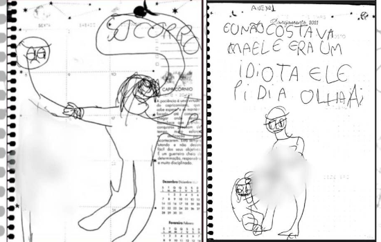 Encontradas em um caderno, as imagens desenhadas pelas duas meninas possuem cunho sexual e foram apreendidas pela Polícia Civil.