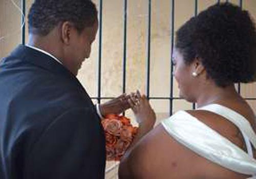 No momento de dizer o simbólico ?sim?, as duas presas, que têm na inicial de seus primeiros nomes a letra ?V?, trocaram beijos e mensagens de amor, emocionando quem acompanhava a cerimônia. As detentas ainda assinaram a ata de união, estabelecida pela Fauer. Os convidados foram recepcionados com doces e salgadinhos, após o cumprimento às noivas.
