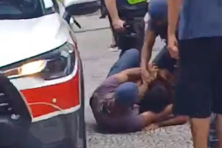 "Está dando um mata-leão no homem. O que é que é isso? O que é que é isso? Gente, o que é que é isso. Está enforcando o homem. A própria polícia, que despreparo é esse", diz uma testemunha.