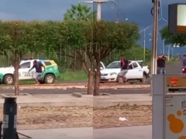 Após o vídeo passar a circular, o oficial acabou sendo confundido com os criminosos envolvidos na abordagem. Nas imagens, três homens aparecem com as mãos na cabeça e logo em seguida um outro homem, sem fardamento, surge entrando e dirigindo a viatura policial.