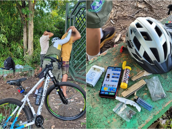 O preso estava fazendo uso de substância análoga a maconha com seu irmão, quando foram abordados pelo ciclopatrulhamento
