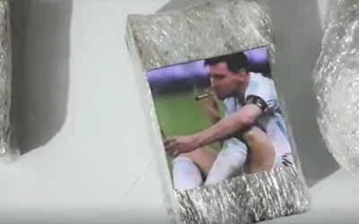 Droga apreendida tinha imagem de Messi fumando. (Foto: Reprodução - Polícia Militar)