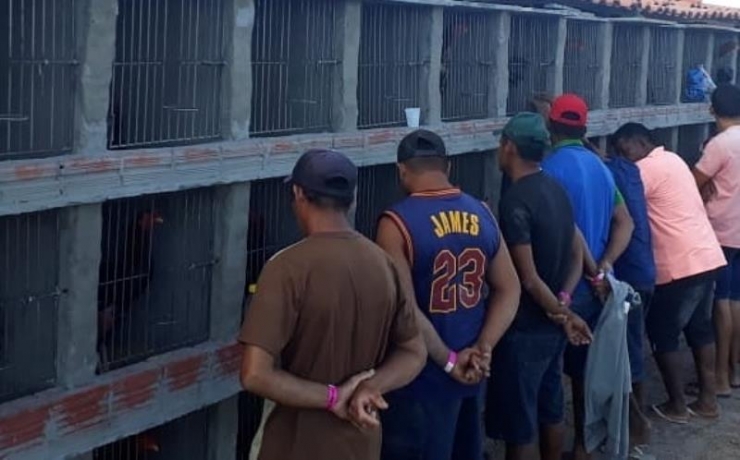 Aldely disse que as investigações já estavam em curso quando os policiais chegaram ao local, encontraram cerca de 80 a 100 galos, siringas, tesouras, esporões de metal e outros objetos. Sete pessoas, entre organizadores e donos de galos, foram detidos e levados para a delegacia, onde prestaram depoimentos e foram liberados. Segundo o delegado, um homem foi detido com cerca de 12 mil reais em espécie.