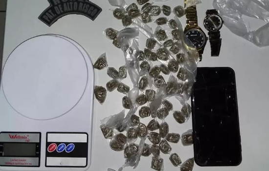 As equipes localizaram uma balança de precisão, além de 71 porções de substância análoga à maconha, além de vasto material para embalo do entorpecente.