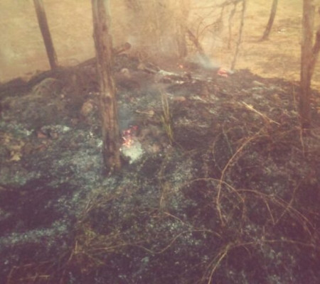 Ao chegarem ao local os militares constataram a veracidade da denúncia e embora o fogo já tivesse sido controlado pelo autor do incêndio ele informou que perdeu o controle ao tentar queimar um lixo, no entanto ainda existia sinais de fogo e de fumaça.